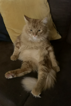 Voici Sabry (l’année des S et Sabry pour le personnage de la série H interprêté par Ramzy avec Éric Judor et Jamel Debouze), il a 4 ans, il est né en 2021, c’est un mâle, c’est un croisé main coon, il est roux.